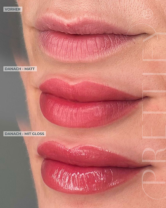PRETTIFY Permanent Make-up: Vorher – Vorzeichnung – Nach der Lip Blush-Behandlung